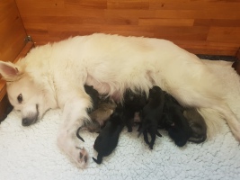 Am 24.11.2025 hat Briska in einer problemlosen Geburt 3 Rüden und 5 Hündinnen zur Welt gebracht. Es ist Briskas letzter Wurf.